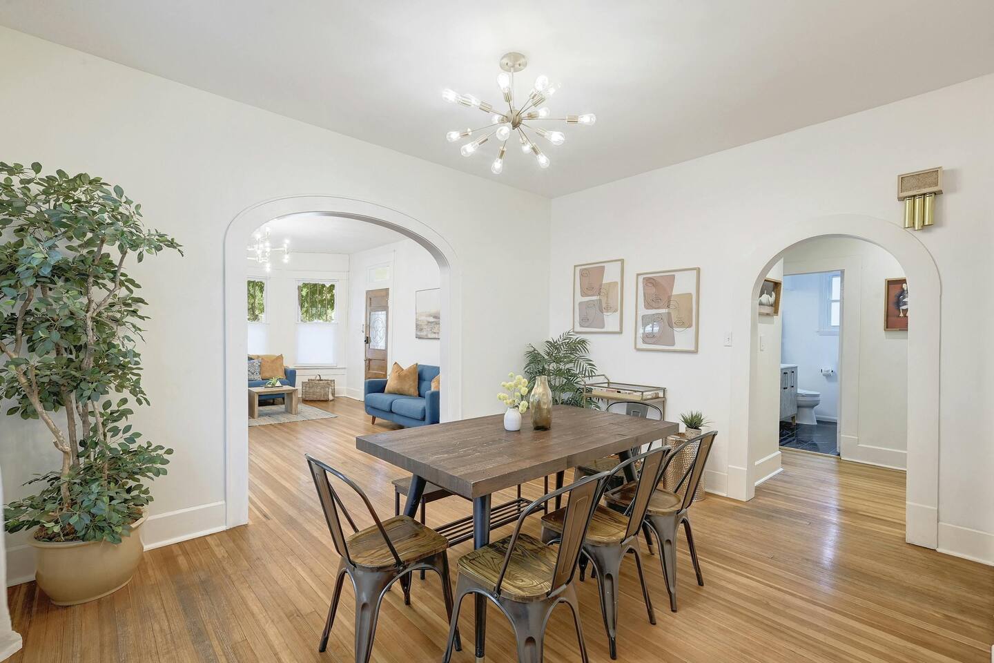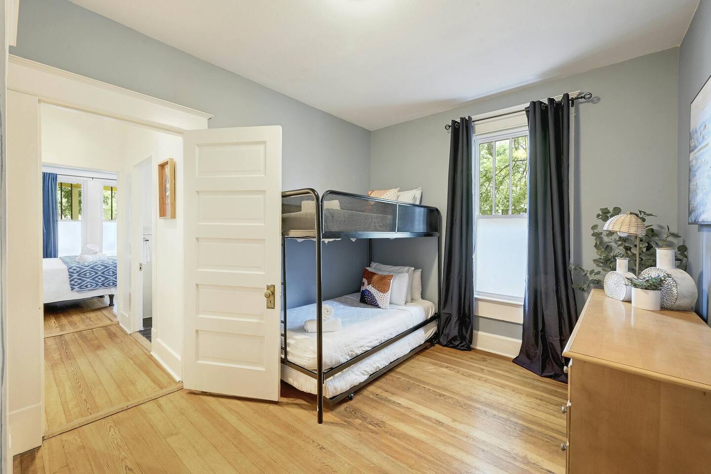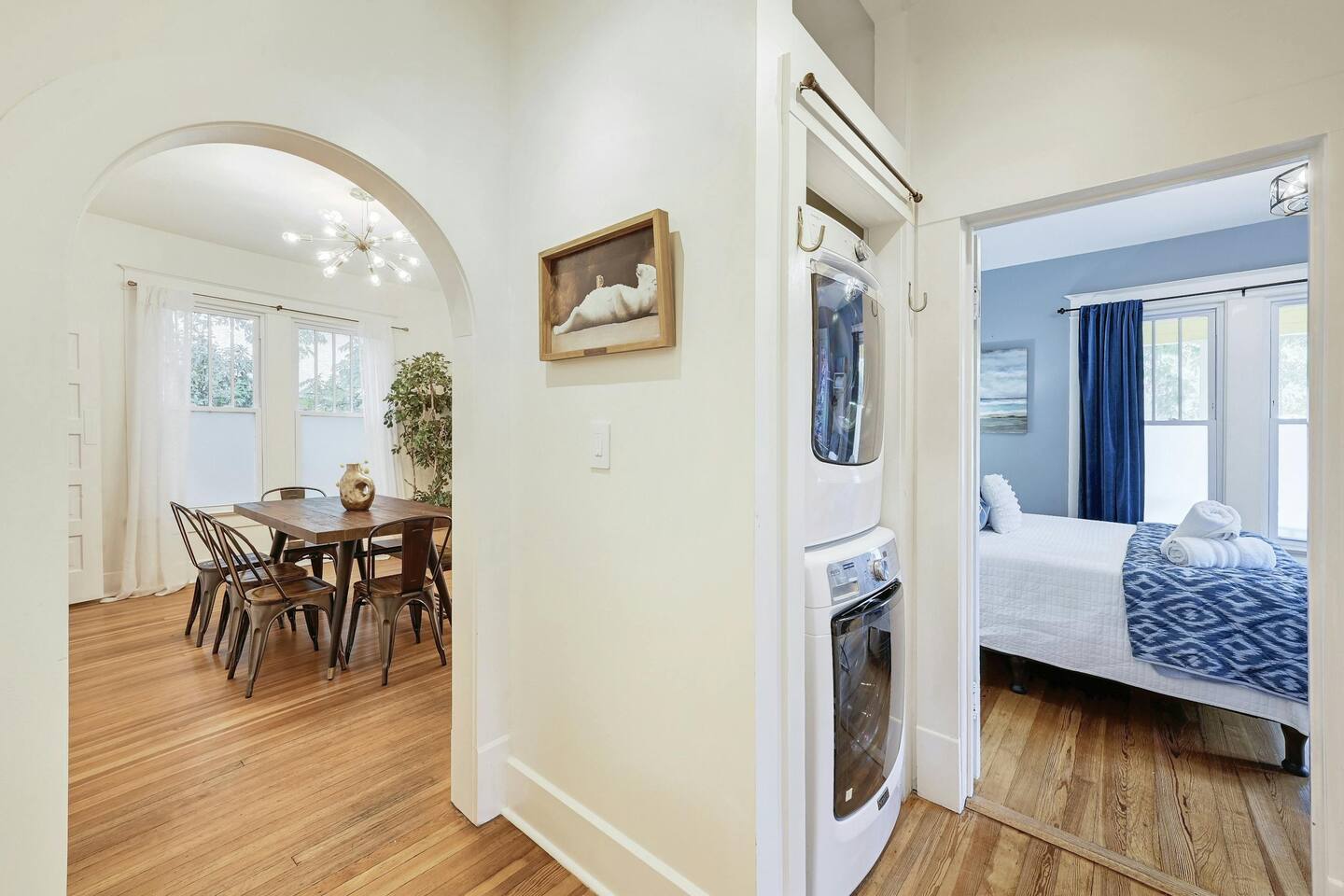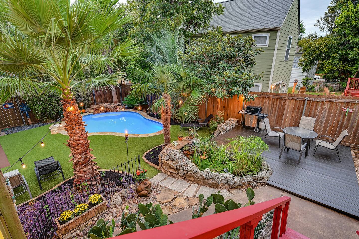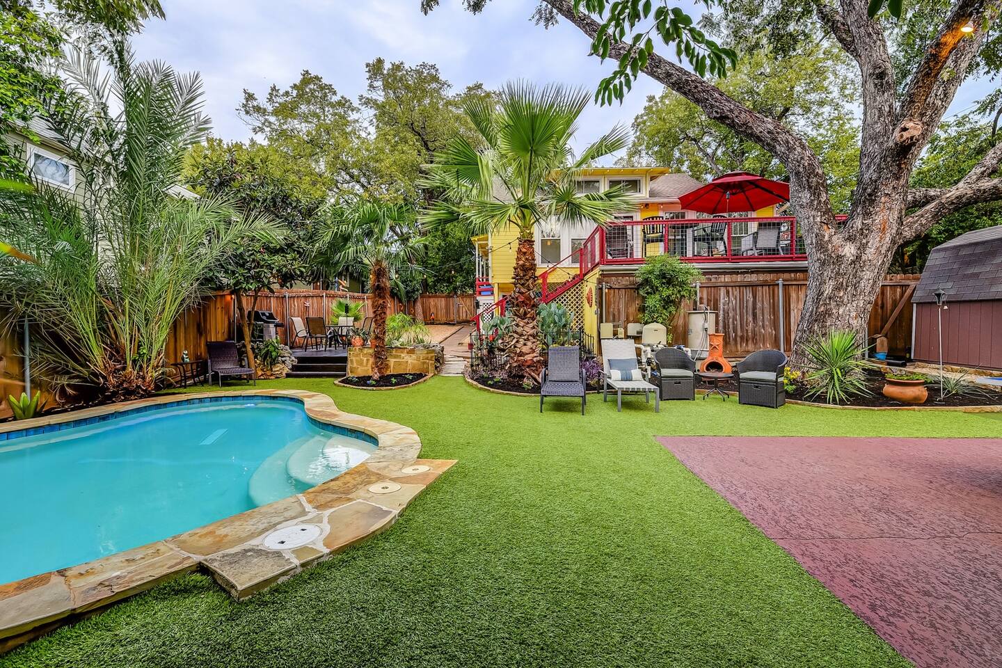 Real gem in Central Austin. This retreat is ideal for large groups! Unique Craftsman home, built in 1914, recently remodeled, blending the historic charm with modern features. This home features 5 bedrooms, 3 living rooms, and abundant natural light. The backyard oasis includes pool, pond, table tennis, spacious deck for entertaining. There is a carport for 2 cars, Tesla Level 2 charger, and free street parking. Only minutes from downtown Austin, ideal location to enjoy Austin!