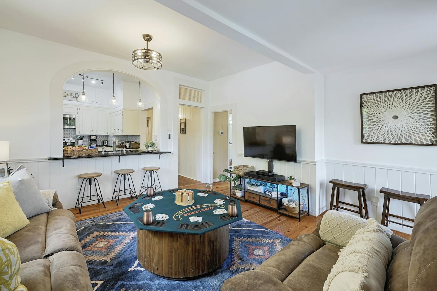 Charming, remodeled Craftsman style home, built in 1914, rare find. This home is over 100 years old with modern touches to give you a true Austin experience. Our backyard is loved by all of our guests with multiple decks and sitting areas for big groups to socialize and have fun.
